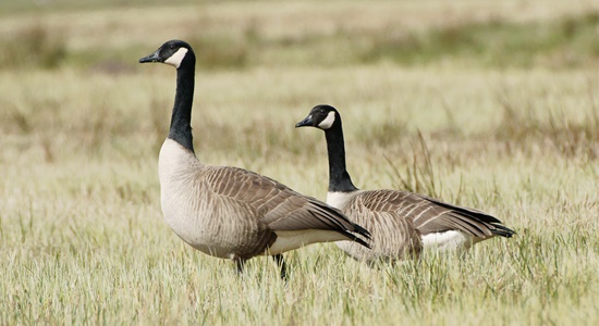 De Canadese gans is te herkennen aan de zwarte hals en zwarte kop ...