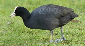 De meerkoet is een gedrongen, zwarte watervogel met een witte...