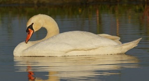 De knobbelzwaan is een grote witte watervogel met een lange...