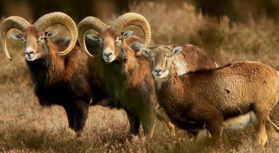 De moeflon is een klein roodharig wild schaap met een donkere plek...