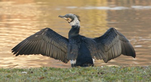 De aalscholver is een grote zwarte watervogel met gele gehaakte...